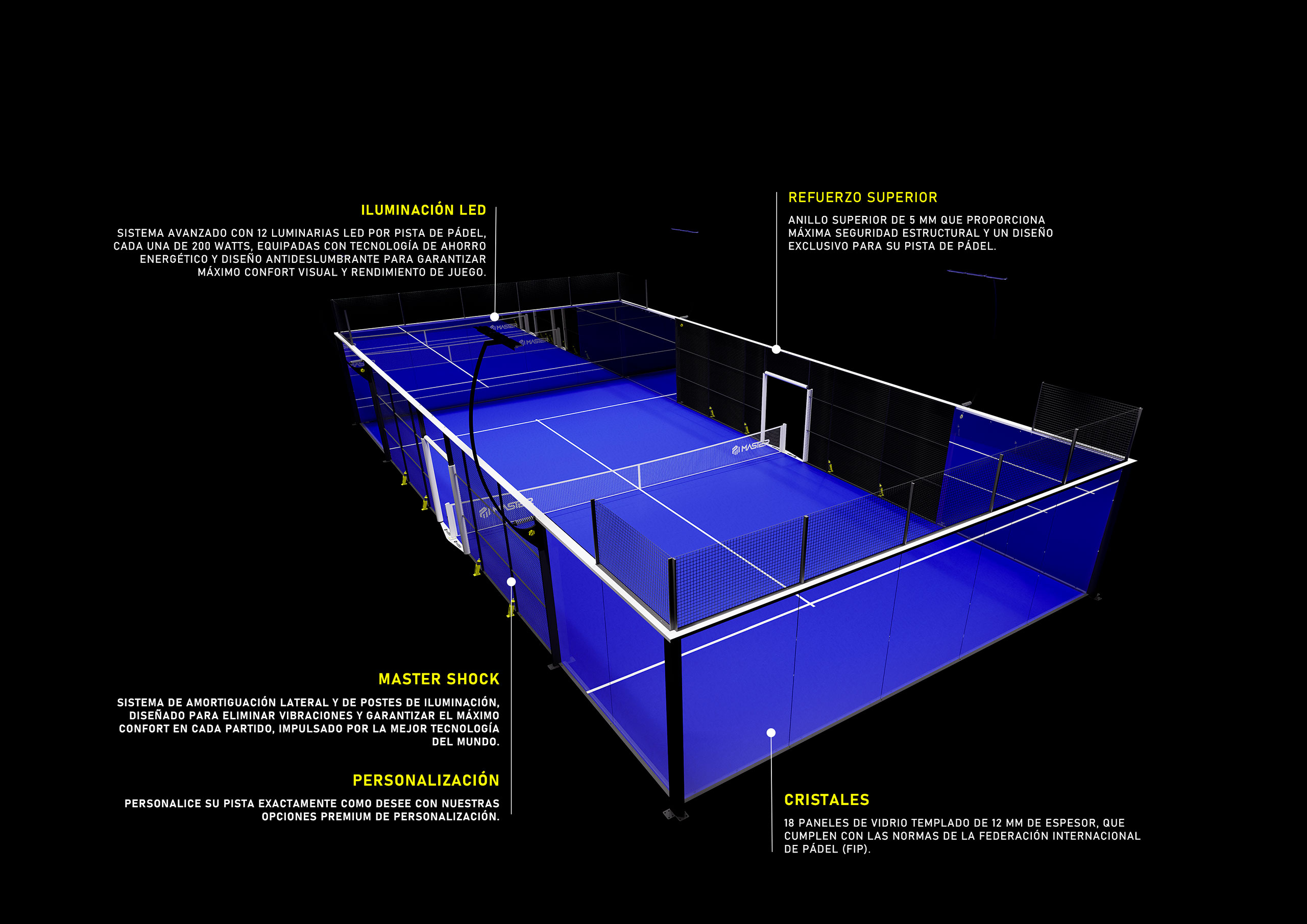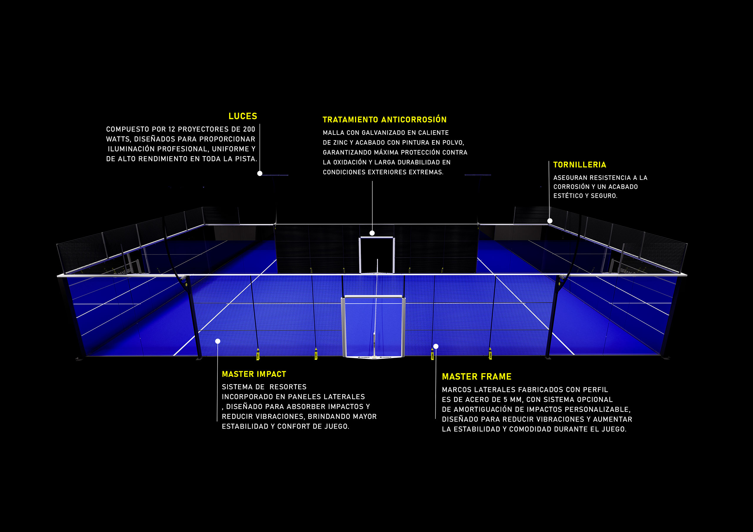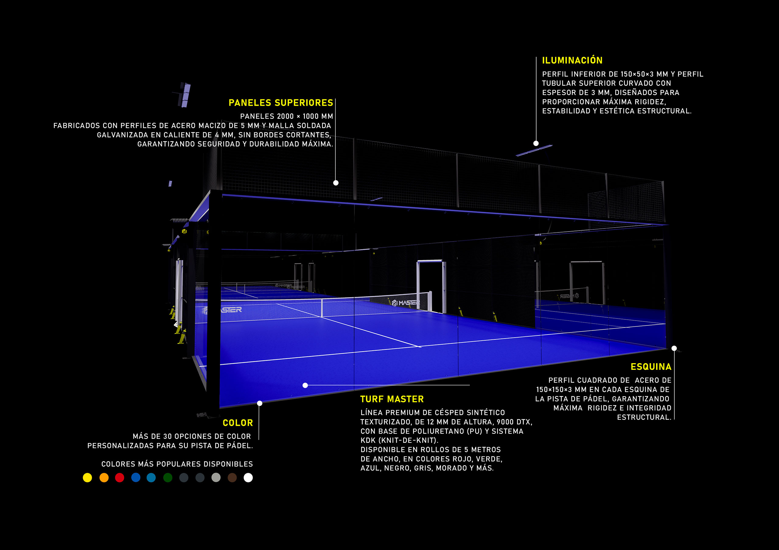 Versión más extendida de nuestras pistas de alta gama. Pista con aspecto impecable y perfilería en esquinas, para superficie outdoor todo terreno. Todos los elementos están al tope de línea para entregar la mejor pista jamás vista.